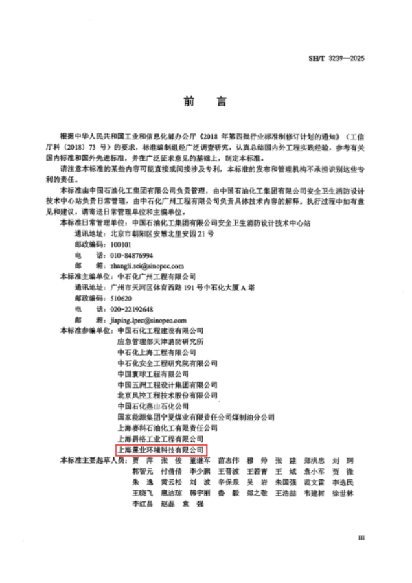 2025年11月1日,由中華人民共和國工業(yè)和信息化部發(fā)布的石油化工行業(yè)標(biāo)準(zhǔn)SH/T 3239-2025《石油化工生產(chǎn)區(qū)域人員避難所設(shè)計規(guī)范》正式實施。